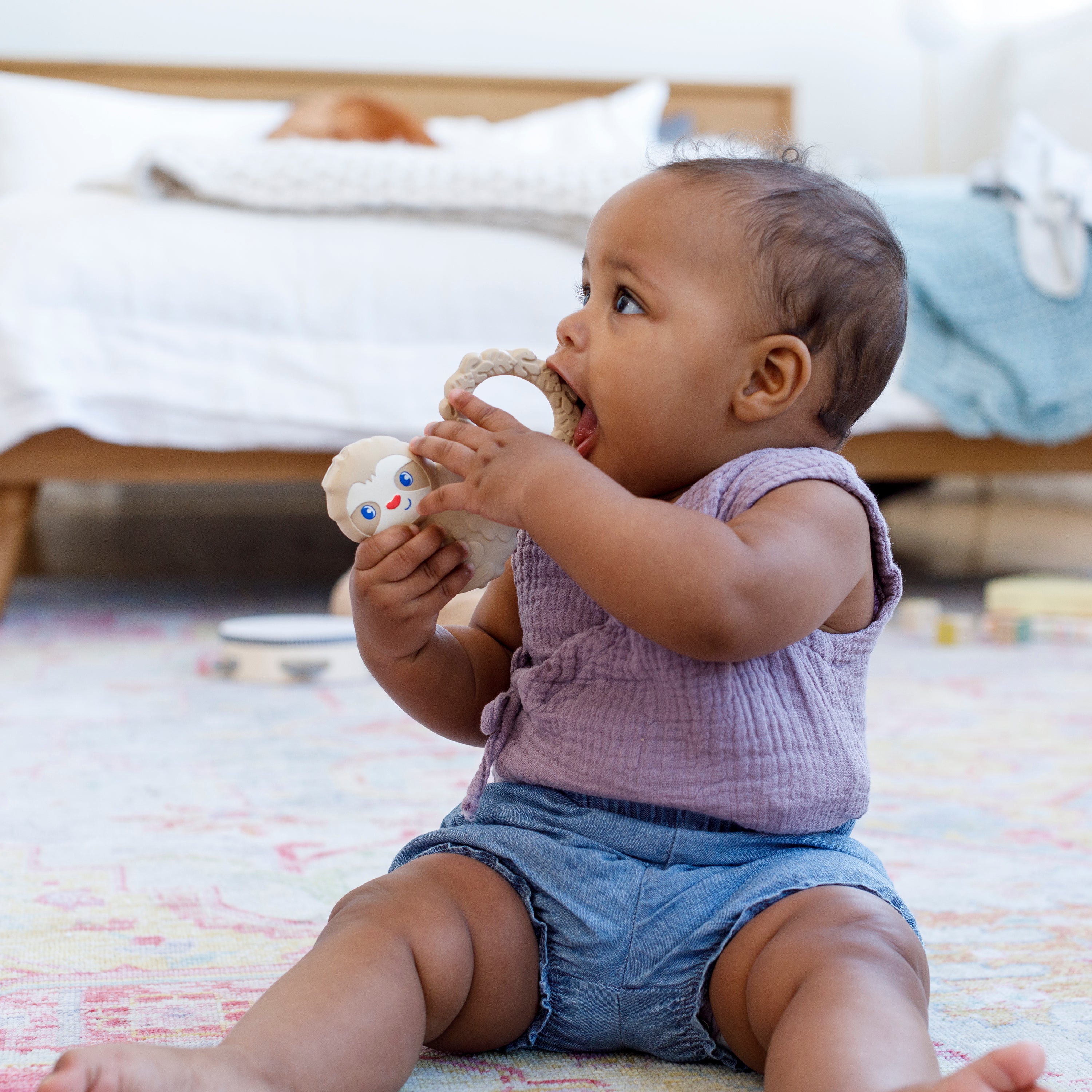 Soft, flexible and easy-to-grasp, babies will love this sweet sloth’s lightweight design and soothing bumpy textures. Made from 100% high quality natural rubber.